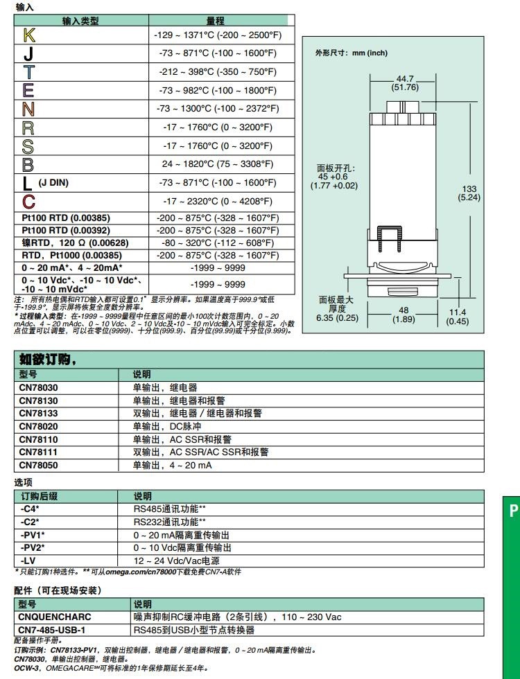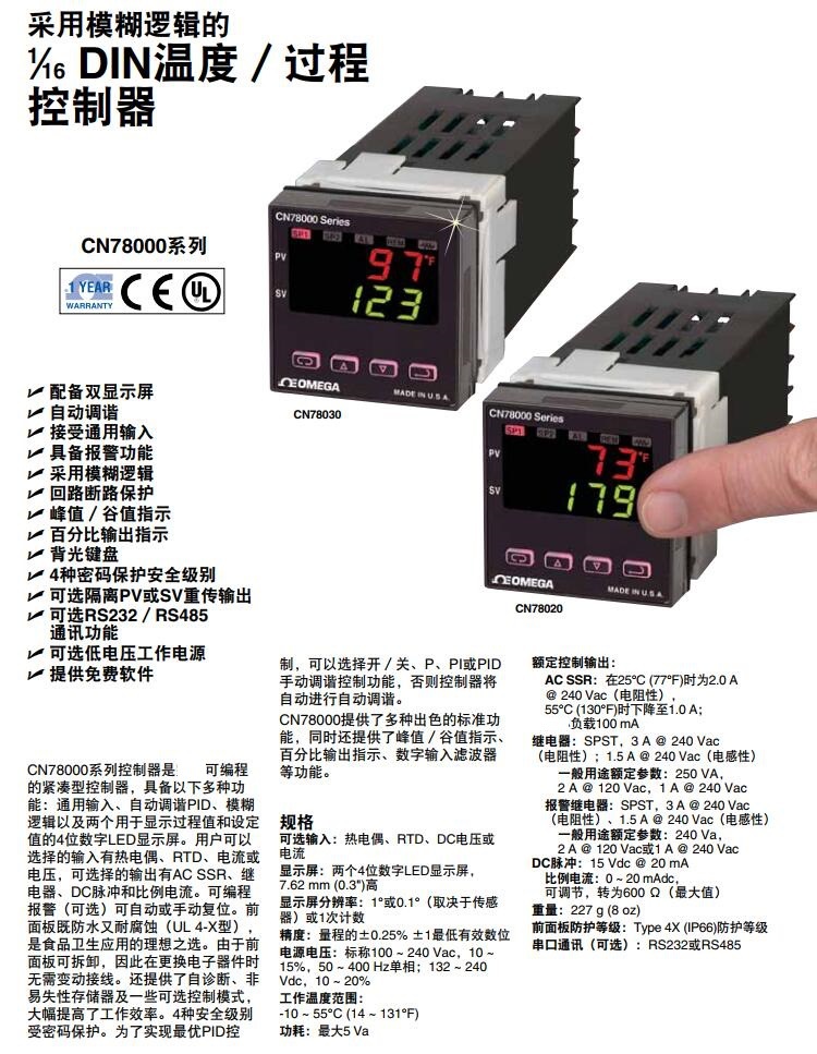美国OMEGA奥米佳CN78000系列温控器CN78030,CN78133,CN78020,CN78110