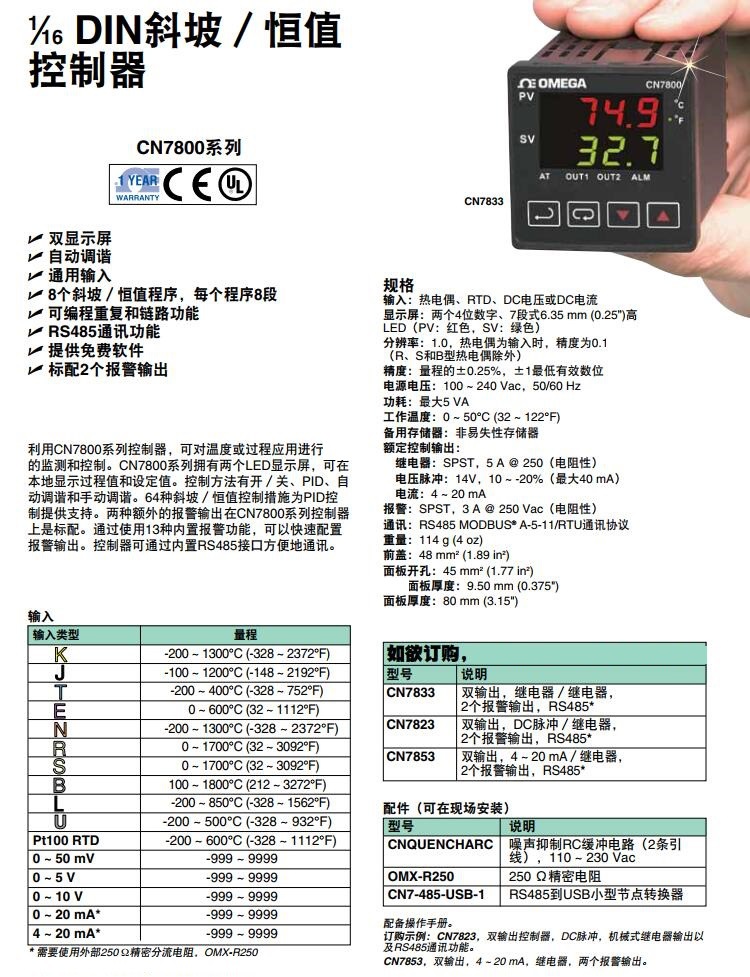 美国OMEGA奥米佳CN7800系列温控器控制器CN7833,CN7823,CN7853