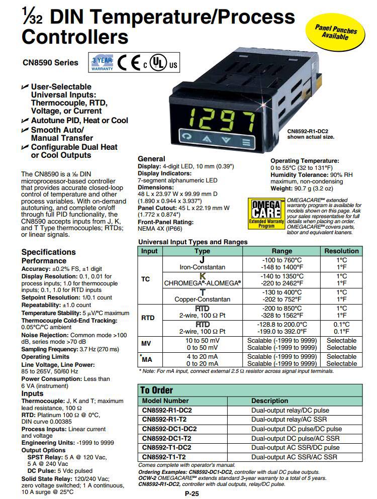 OMEGA奥米佳CN8590温控器CN8592-R1-DC2,CN8592-DC1-T2,CN8592-T1-T2