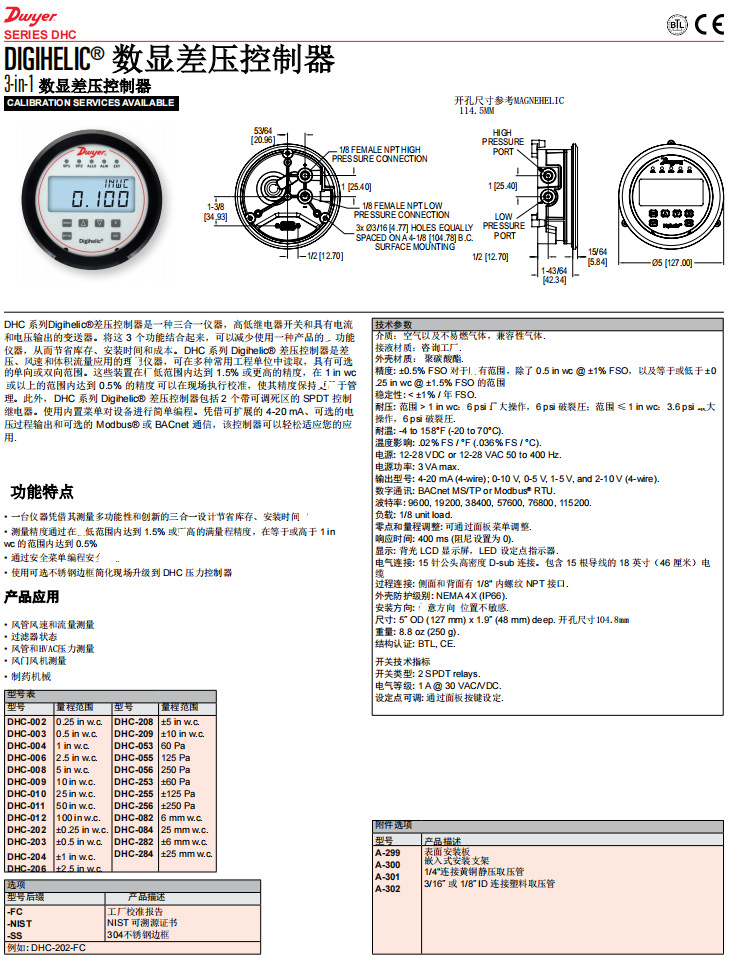 美国DWYER德威尔差压变送控制器DHC-012,DHC-202,DHC-203,DHC-204