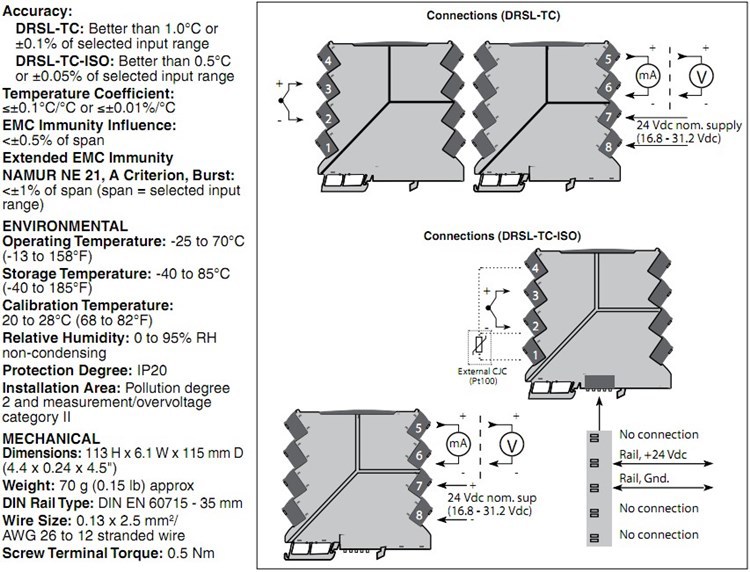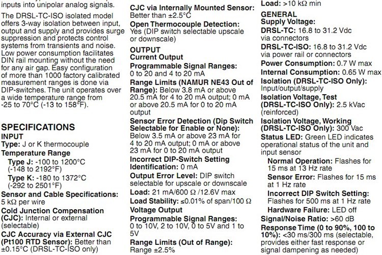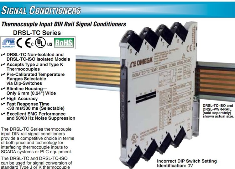 美国OMEGA奥米佳导轨安装温度变送器信号调节器DRSL-TC,DRSL-TC-ISO