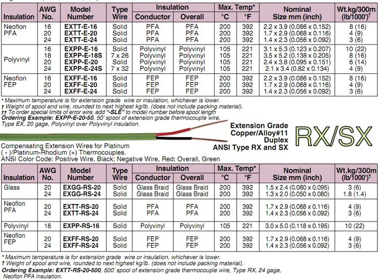 美国OMEGA奥米佳热电偶线EXTT-RS-24-1000,EXTT-RS-20-1000-500-25-100