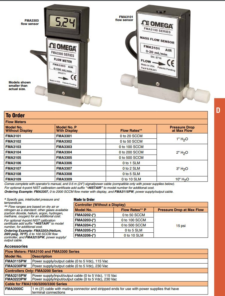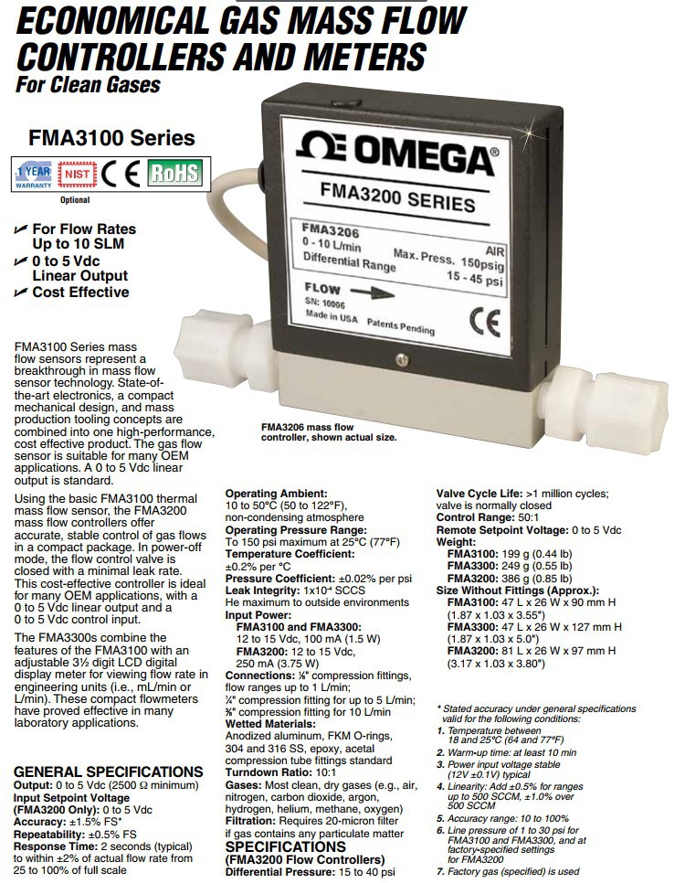 美国OMEGA奥米佳质量流量计FMA3302,FMA3303,FMA3304,FMA3305