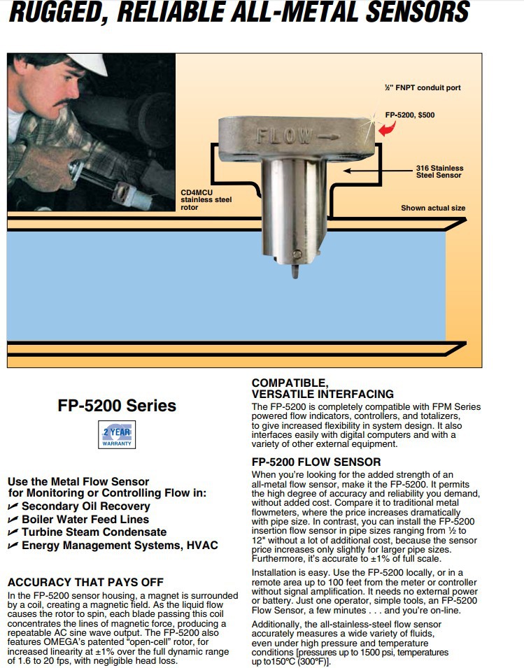 美国OMEGA奥米佳金属流速传感器FP-5200,FP-5201