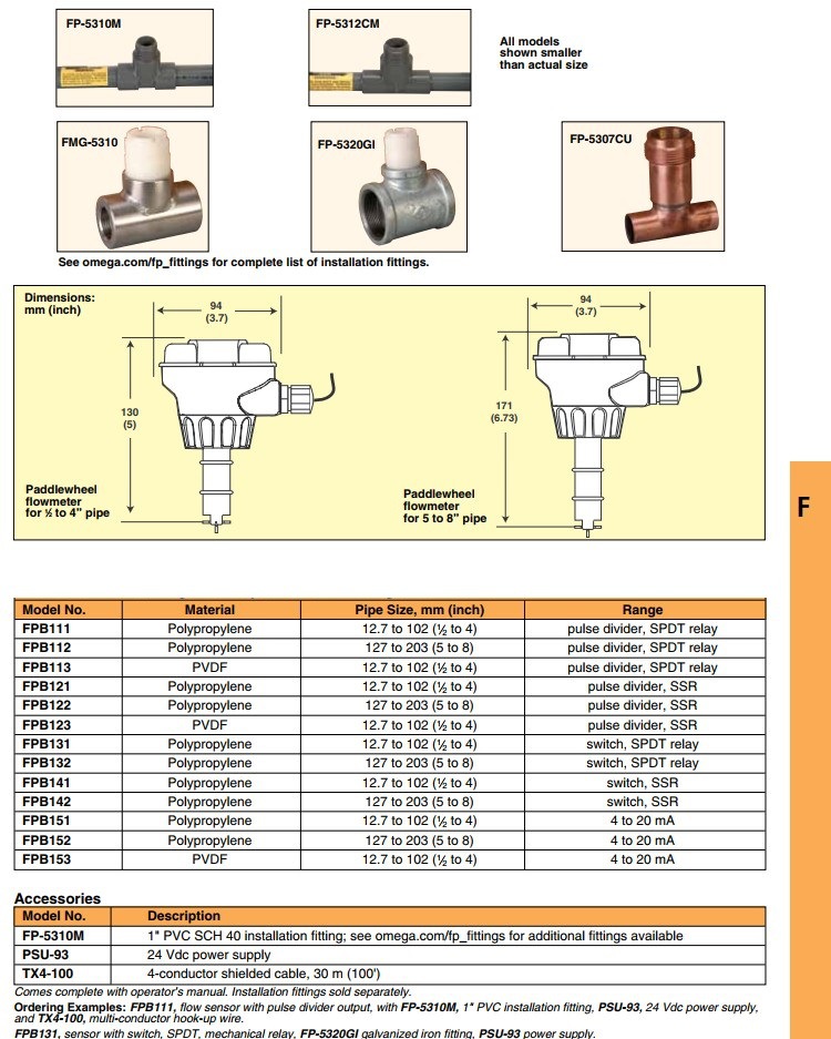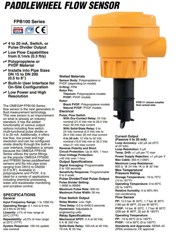 美国OMEGA奥米佳流速传感器FPB111,FPB121,FPB151,FPB152,FPB153