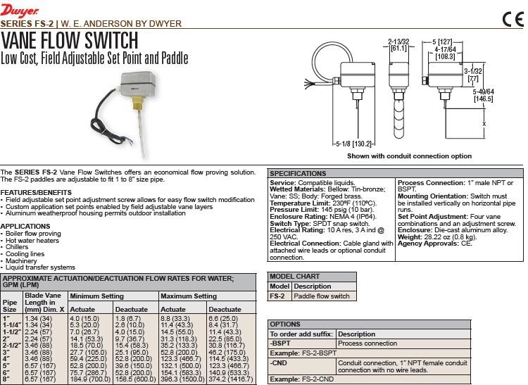 美国Dwyer德威尔流量开关FS-2,FS-2-BSPT-2M,FS-2-CND