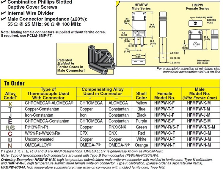 美国OMEGA奥米佳连接器HFSTW-J-M,HSTW-J-F-FT,HFSTW-E-M,HSTW-E-F-FT