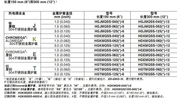 美国OMEGA奥米佳HGKMQSS-040E-6热电偶HGKMQSS-062E-6,HGKMQSS-125E-12
