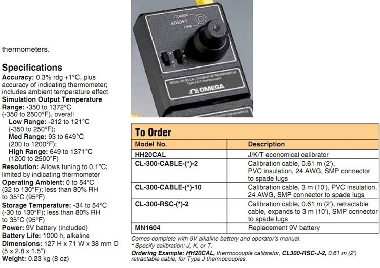 美国OMEGA奥米佳HH20CAL热电偶温度校准器CL-300-CABLE-J-K-T-RSC-2-10