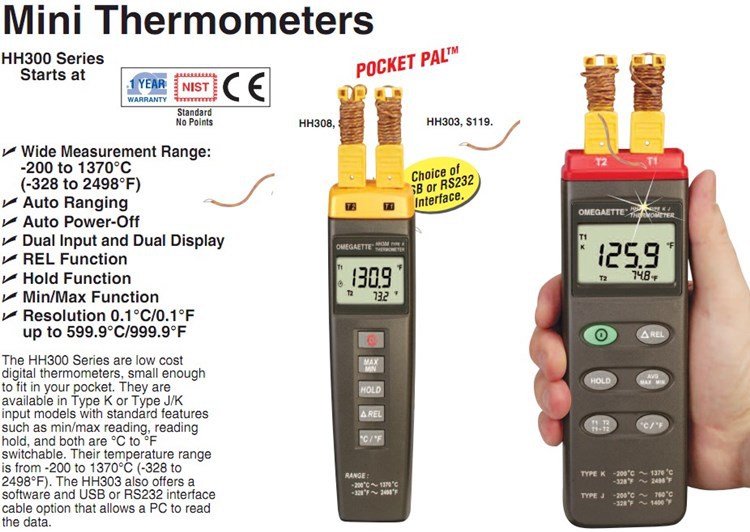 美国OMEGA奥米佳HH308数据记录器温度计MINI-TRIPOD,HH308