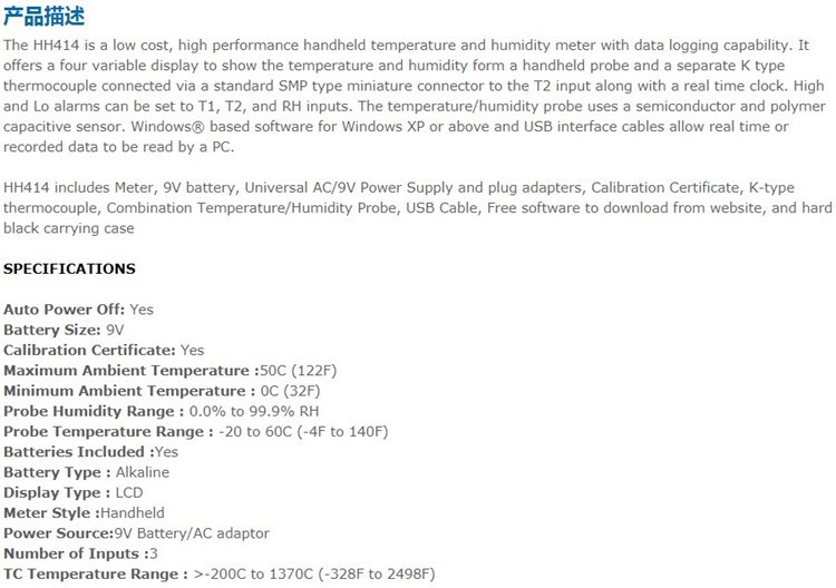 美国OMEGA奥米佳HH414手持式温度湿度计HH414