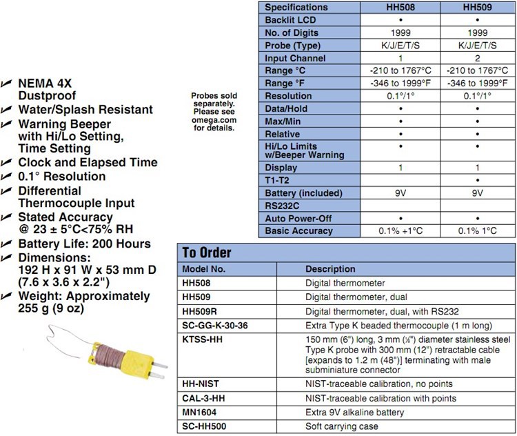 美国OMEGA奥米佳HH501AS手持数字温度计S分度号热电偶输入HH501AS