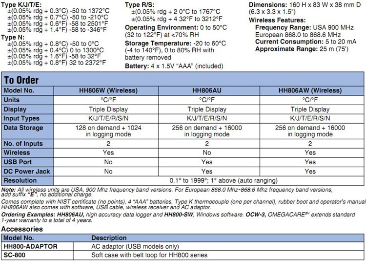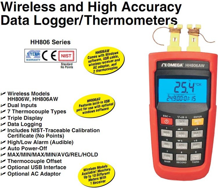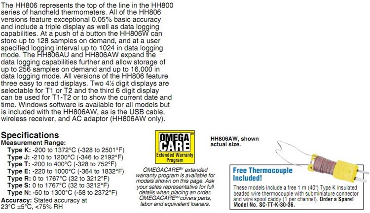 美国OMEGA奥米佳测温仪温度数据记录器温度计HH806AU,HH806WE,HH806AW