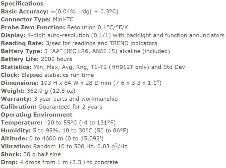 美国OMEGA奥米佳热电偶数字温度计HH911T,HH912T,HH931T,HH932T