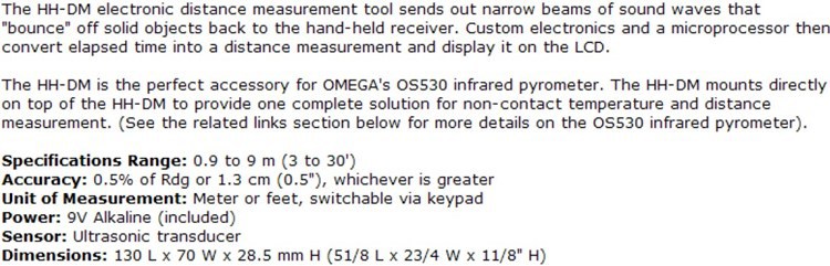 美国OMEGA奥米佳HH-DM电子距离测量工具距离传感器测距仪HH-DM