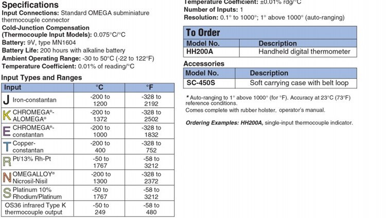 美国OMEGA奥米佳HH200A手持式数字温度计HHM26,HHM27,HHM28,HH200A