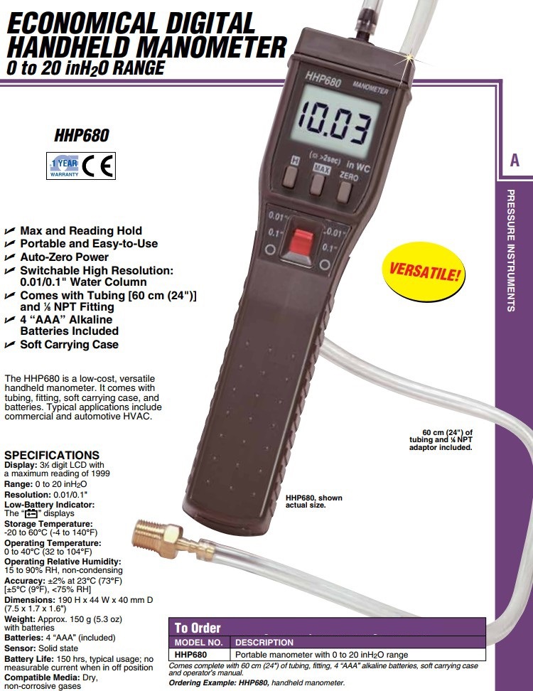 美国OMEGA奥米佳HHP680手持式数字压力计数显压力表HHP680