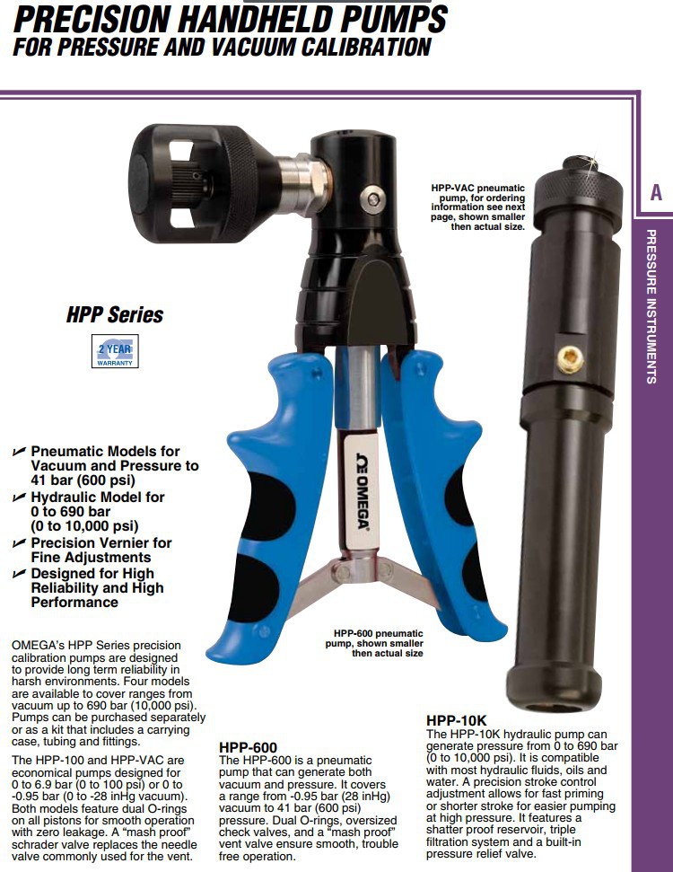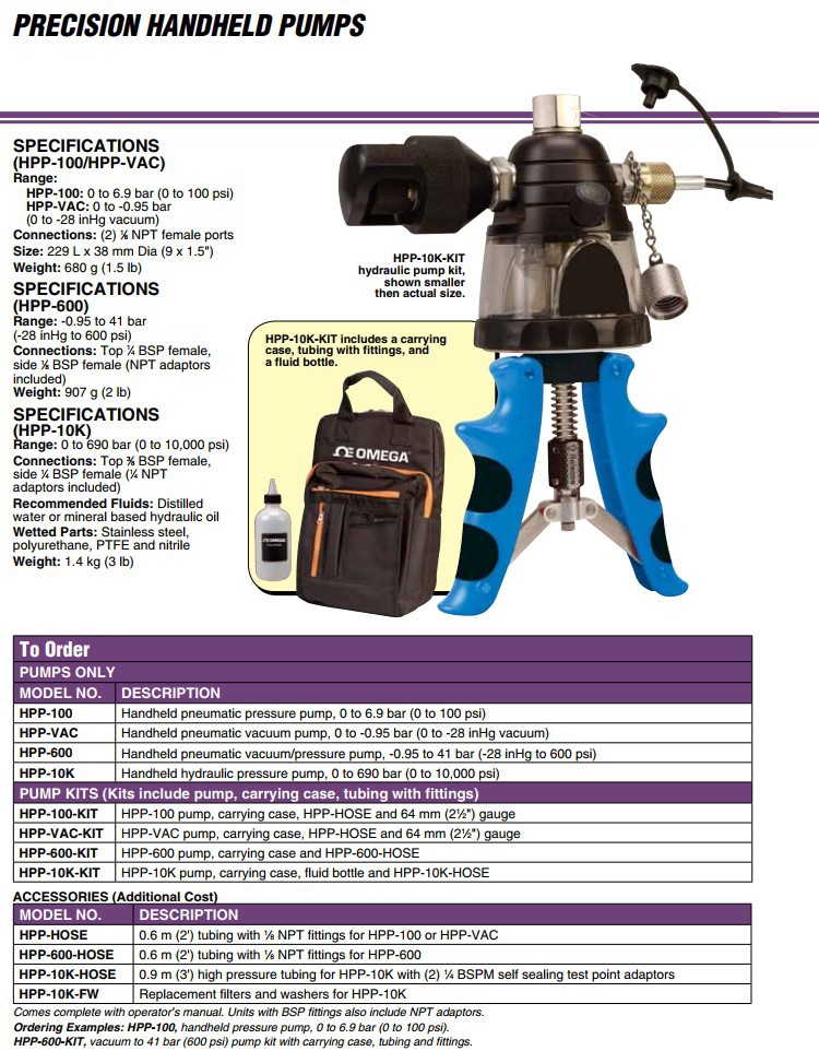 美国OMEGA奥米佳手持式气压泵HPP-100,HPP-VAC,HPP-600,HPP-10K-KIT