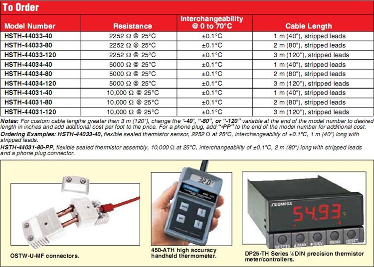 美国OMEGA奥米佳热敏电阻HSTH-44033-40,HSTH-44033-80,HSTH-44033-120