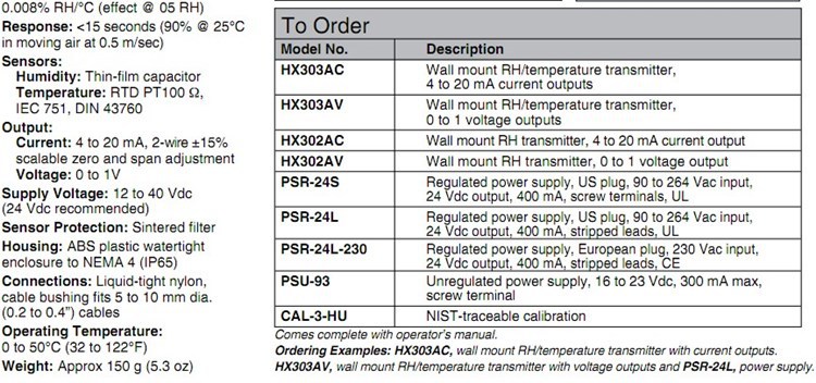 美国OMEGA奥米佳温湿度变送器HX303AC,HX303AV,HX302AC,HX302AV