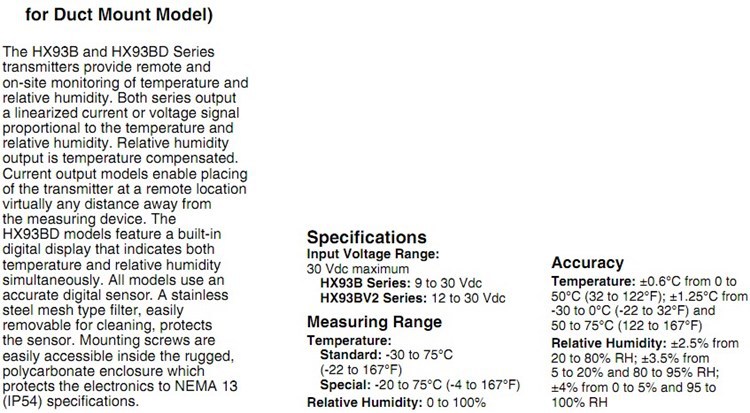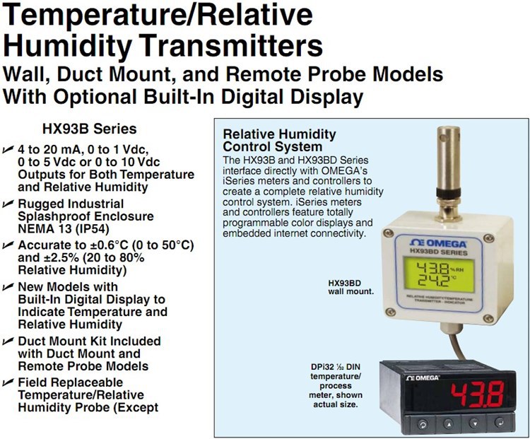 美国OMEGA奥米佳温湿度变送器HX93BV0,HX93BV1-D,HX93BV2-RP1