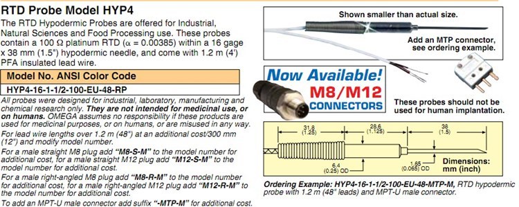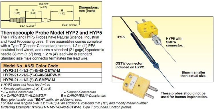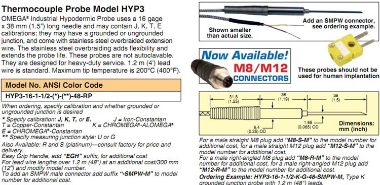 美国OMEGA奥米佳热电偶HYP3-16-1-1/2-T-J-E-G-U-48-60-98-RP-SMPW-M