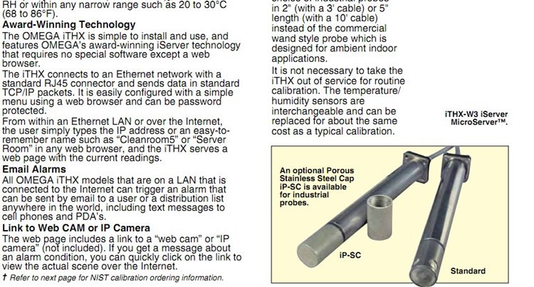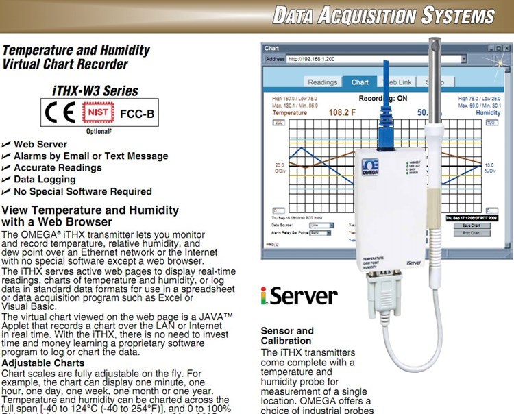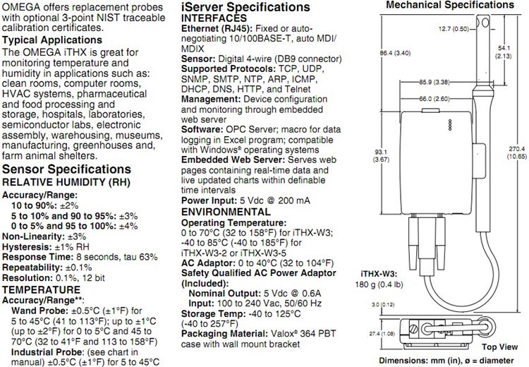 美国OMEGA奥米佳温湿度记录器iTHX-W3-2,iTHX-W3-5,iTHP-W-6-2-5-DB9