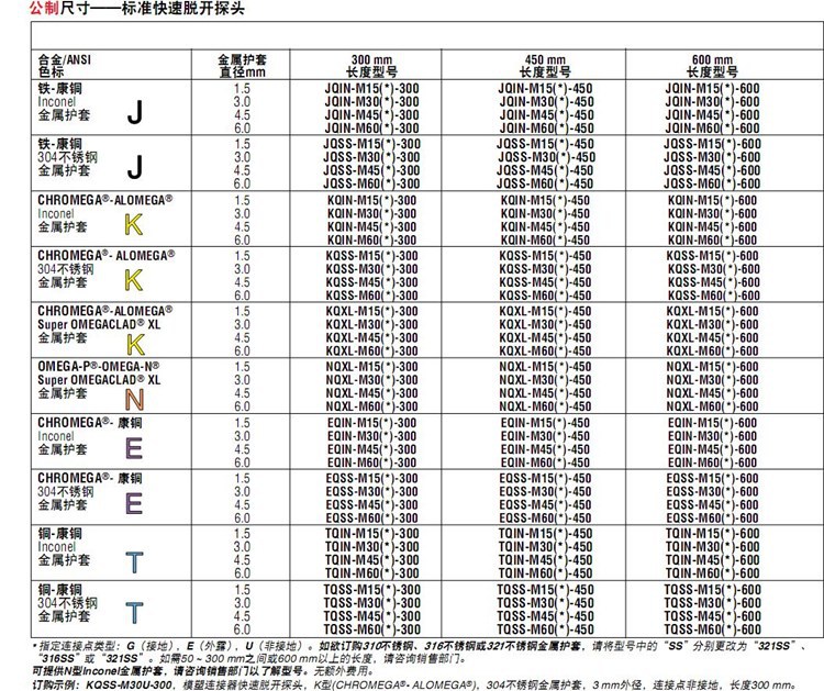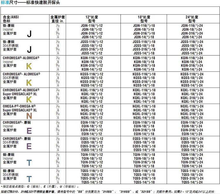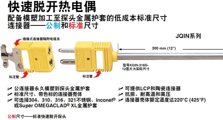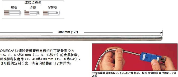 美国OMEGA奥米佳热电偶KQSS-316G-6,KQSS-316U-6,KQSS-316E-6-12-18-24