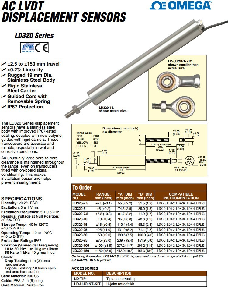 美国OMEGA奥米佳位移传感器LD320-15,LD320-25,LD320-50