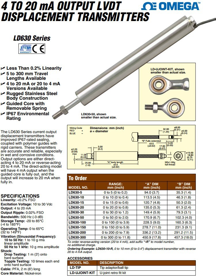 美国OMEGA奥米佳位移传感器LD630-150-R,LD630-200-R,LD630-300-R