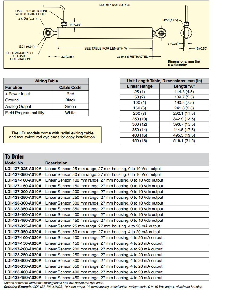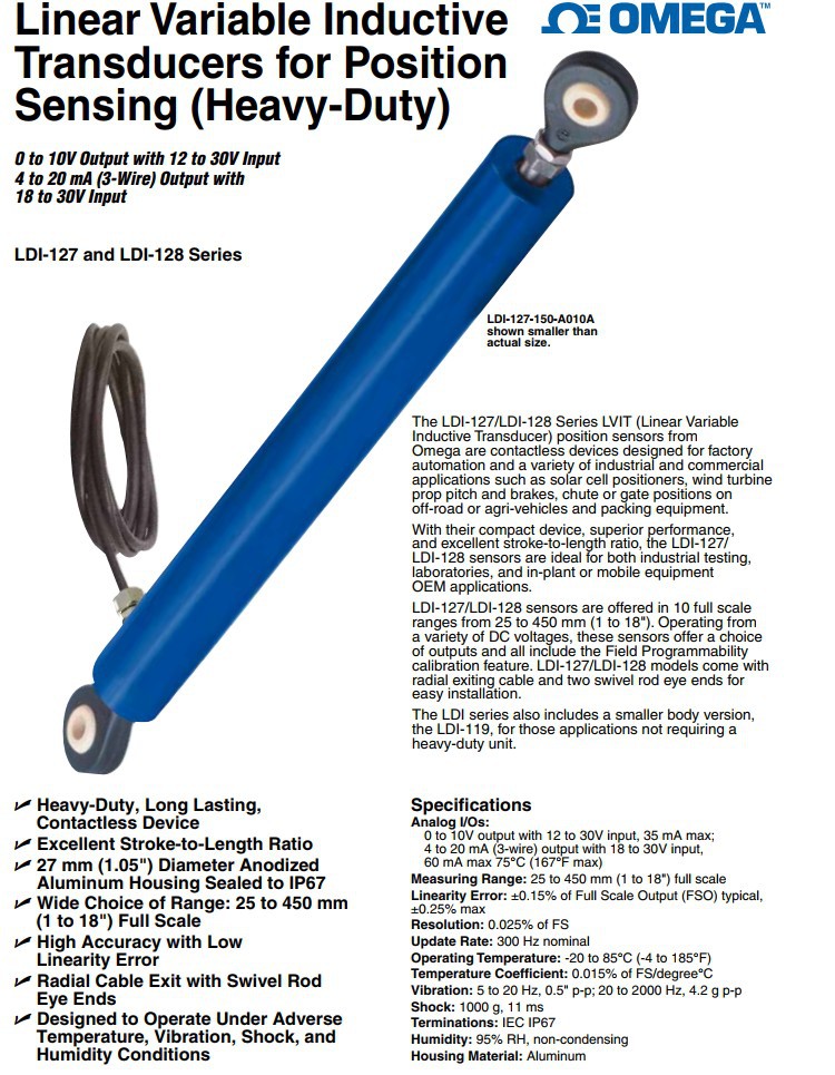 美国OMEGA奥米佳位移传感器LDI-127-025-A010A,LDI-127-050-A020A