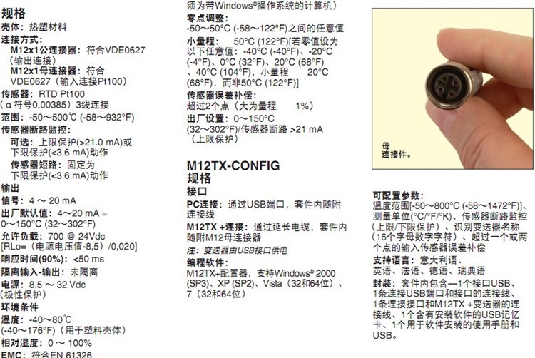 美国OMEGA奥米佳热电阻变送器M12TX-PT100,M12TX-CONFIG-SET
