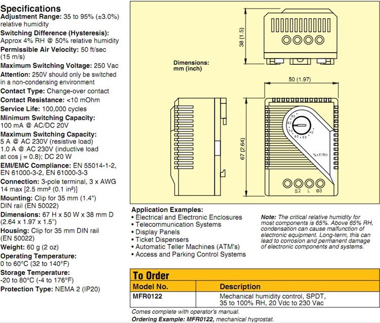 美国OMEGA奥米佳MFR0122恒湿器湿度调节器湿度控制器MFR0122