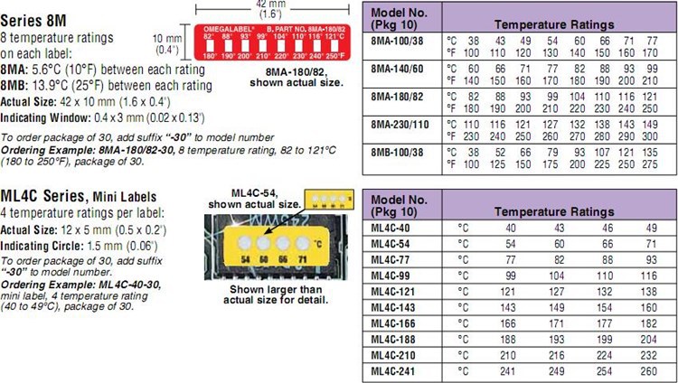 美国OMEGA奥米佳温度标签ML4C-188-10,ML4C-210-30,ML4C-241-30-10