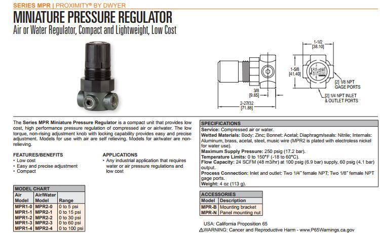 美国dwyer德威尔压力调节器MPR2-0,MPR2-1,MPR2-2,MPR2-3,MPR2-4