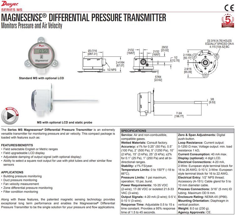 MAGNESENSE美国Dwyer德威尔差压变送器MS-311,MS-331