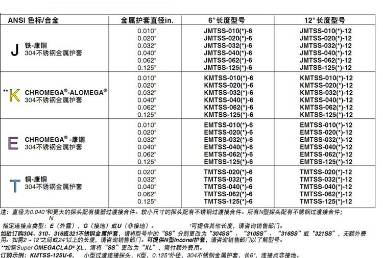 美国OMEGA奥米佳热电偶NMTIN-125G-6,NMTIN-040U-6,NMTIN-062E-6-12-18