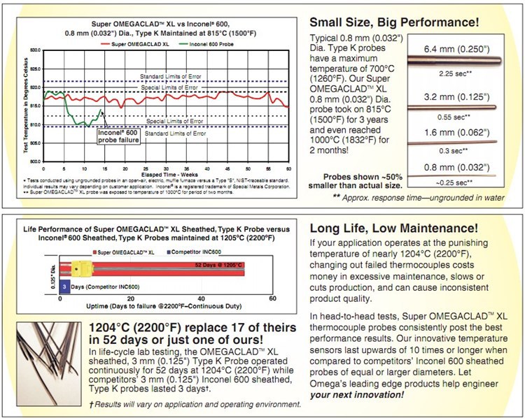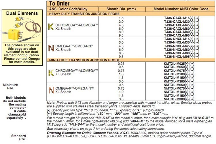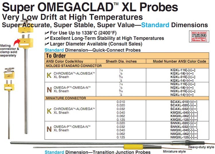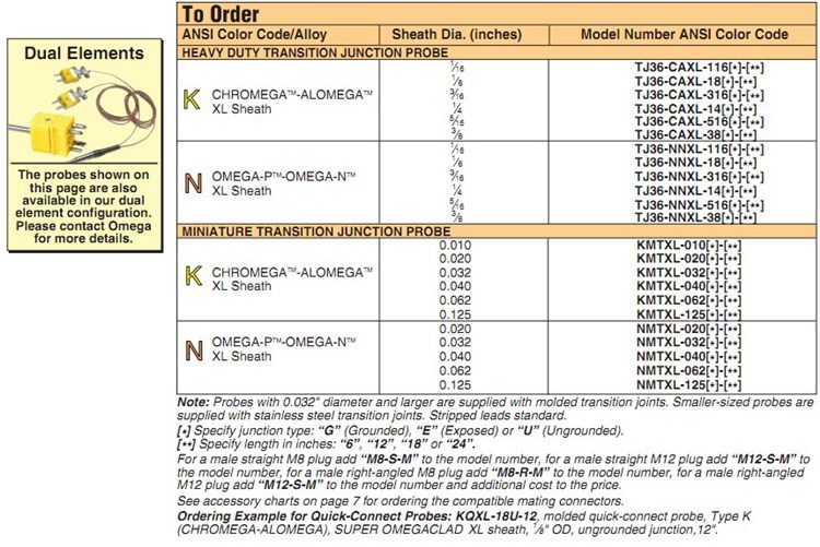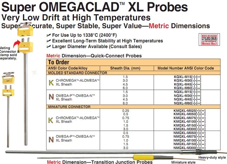 美国OMEGA奥米佳热电偶NQXL-14G-12,NQXL-14U-12,NQXL-14E-12-18-24-36