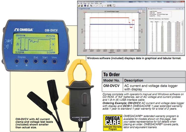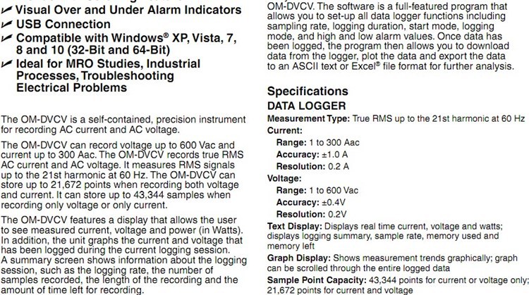 美国OMEGA奥米佳OM-DVCV交流电流和电压数据采集记录仪OM-DVCV