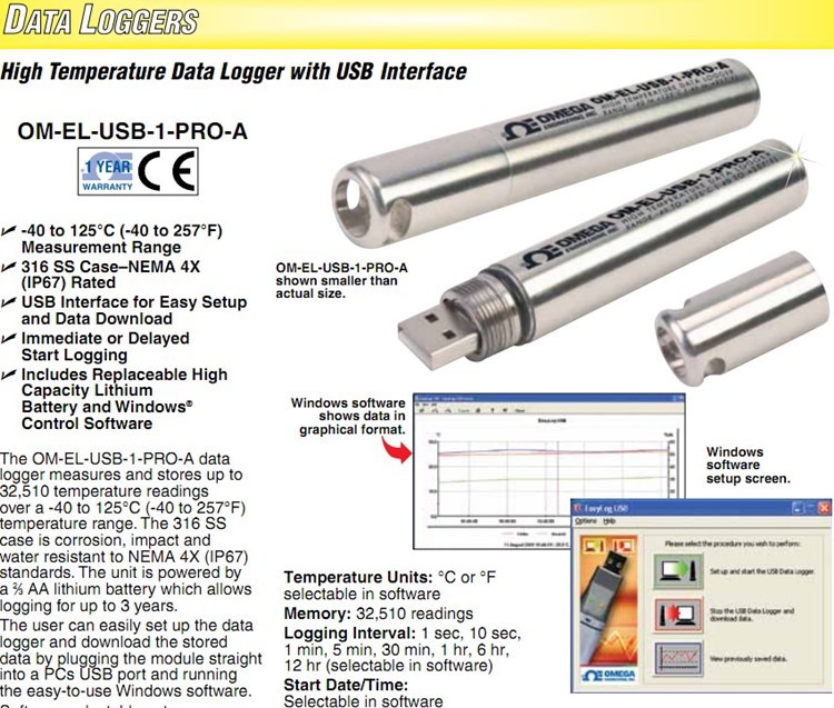 美国OMEGA奥米佳带USB接口的高温温度数据记录器OM-EL-USB-1-PRO-A