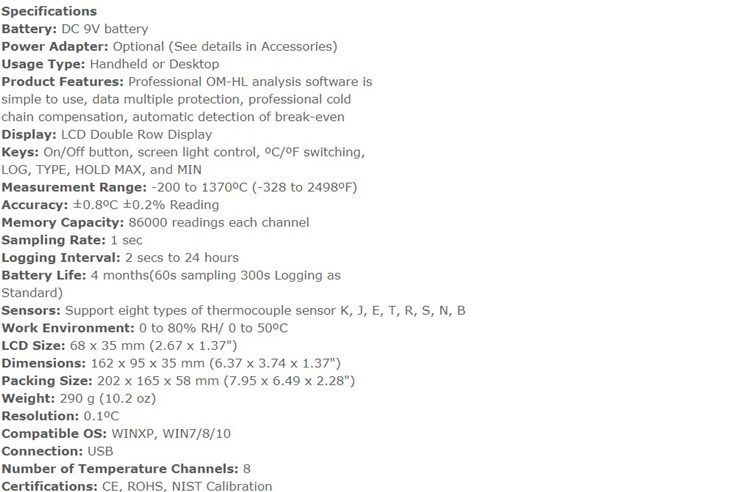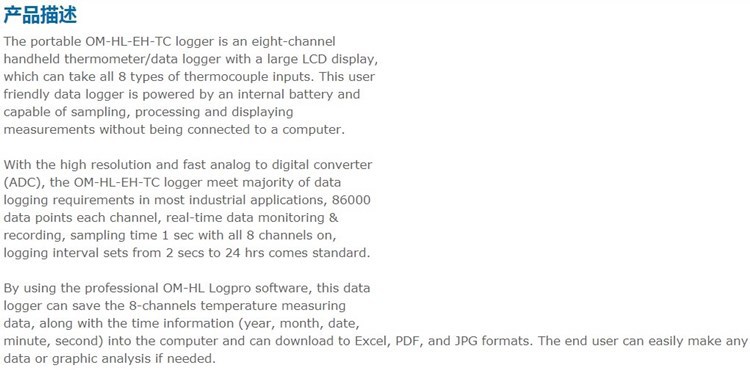 美国OMEGA奥米佳热电偶温度计记录仪OM-HL-EH-TC,OM-HL-EH-TC-J/K-CAL
