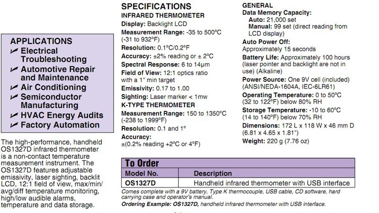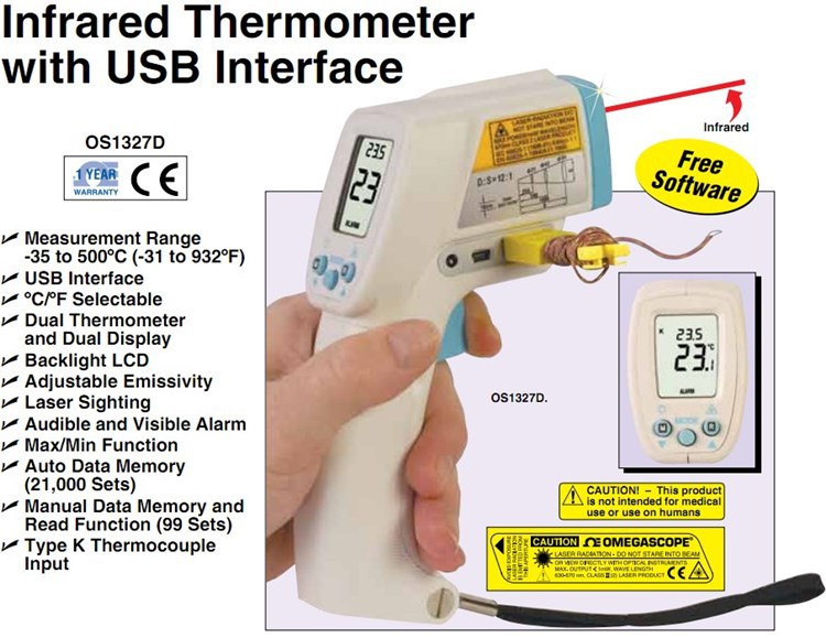 美国OMEGA奥米佳OS1327D手持式红外测温仪USB接口红外温度计OS1327D
