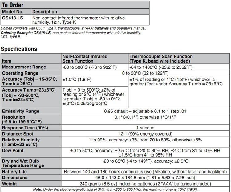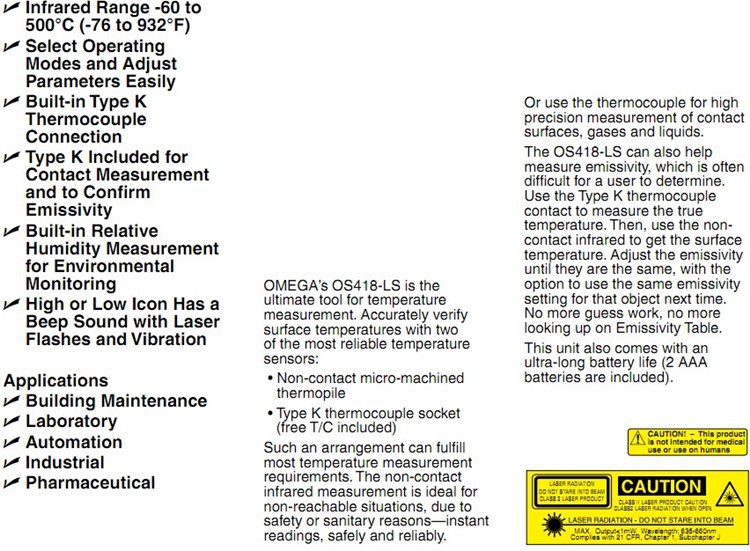 美国OMEGA奥米佳OS418-LS红外温度计手持式红外测温仪OS418-LS