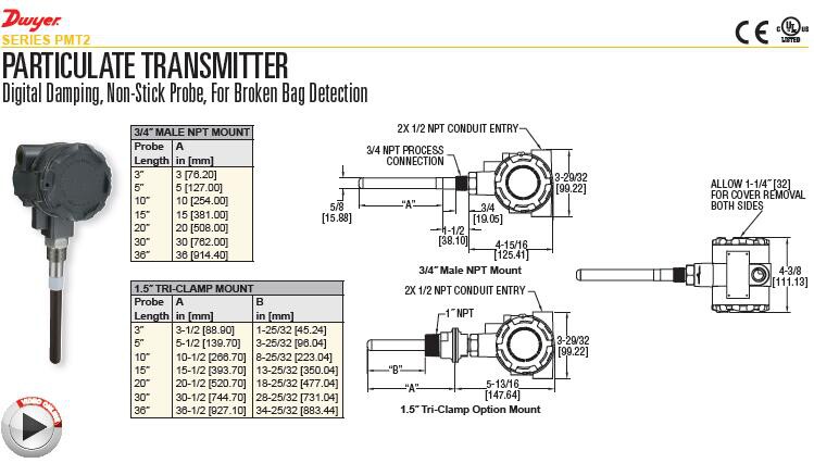 美国Dwyer德威尔粉尘浓度变送器PMT2-30-A-U2,PMT2-36-A-U2