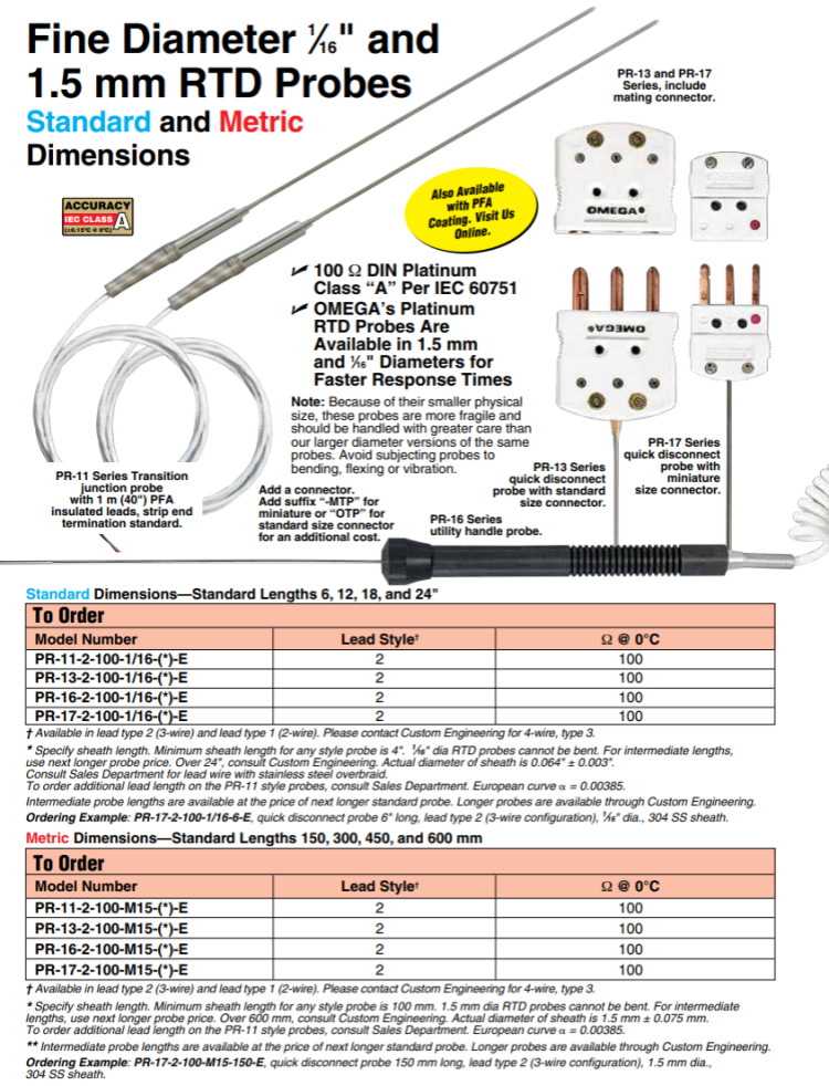 OMEGA奥米佳热电阻PR-17-2-100-1/16-6-E,PR-17-2-100-1/E