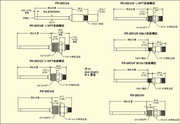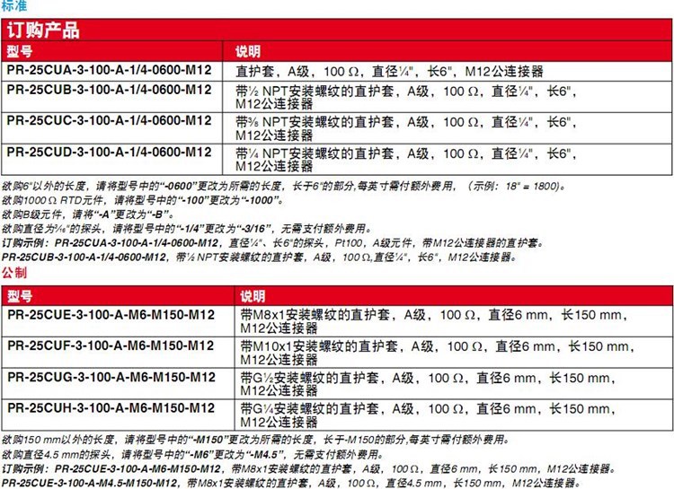 型号 PR-25CUA-3-100-A-1/4-0600-M12
