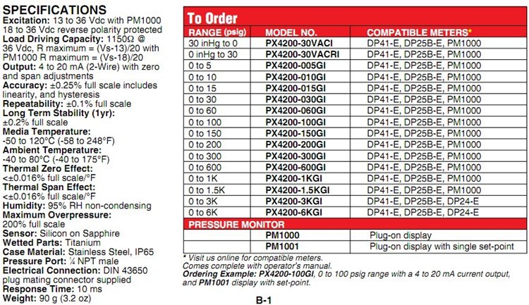 美国OMEGA奥米佳压力传感器PX4200-300GI,PX4200-600GI,PX4200-1KGI