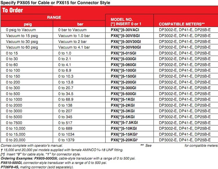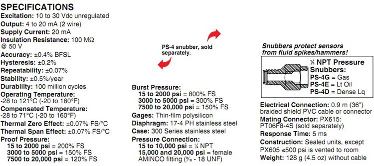 OMEGA奥米佳压力传感器PX615-1KGI,PX615-2KGI,PX615-3KGI,PX615-4KGI
