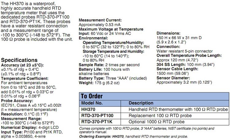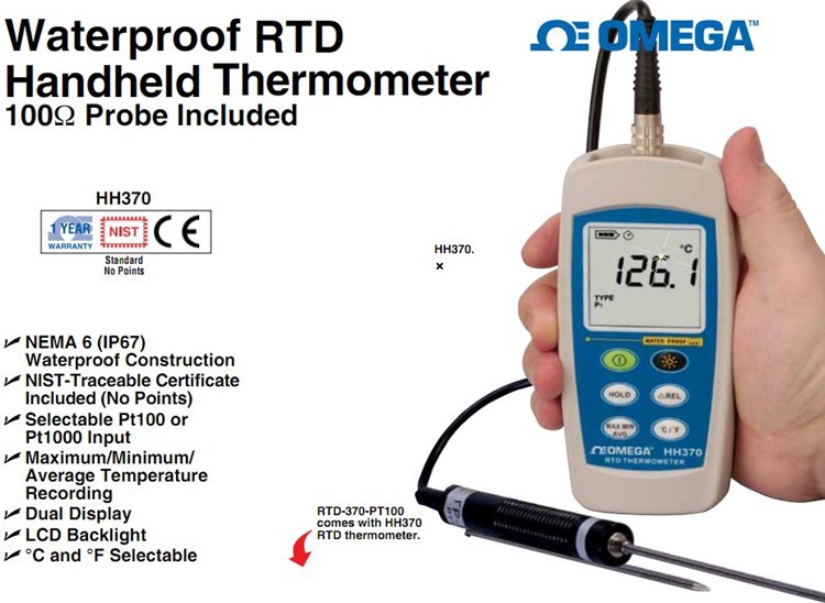 美国OMEGA奥米佳HH370手持式温度计RTD-370-PT100,PT1K,HH370