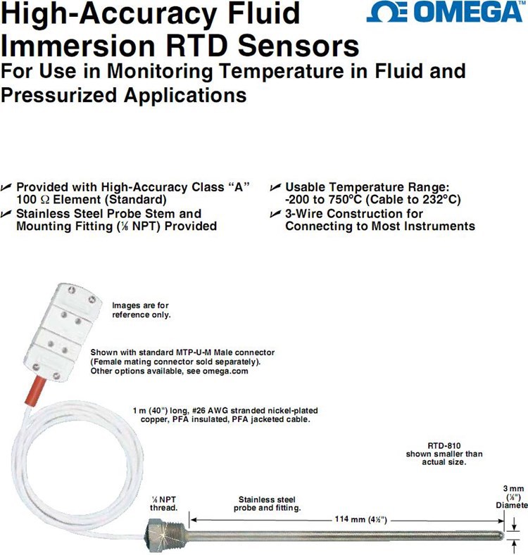 美国OMEGA奥米佳热电阻RTD-810,RTD-810-MTP,RTD-810-TA3F,RTD-810-B